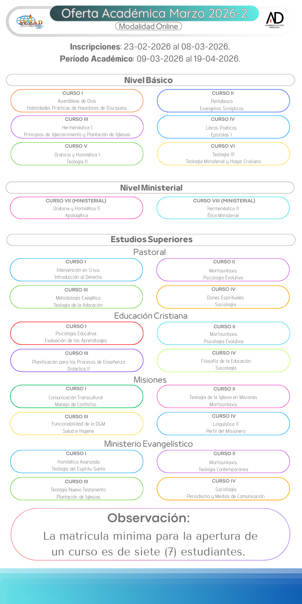 DIRIGIDO A ESTUDIANTES DEL CURSO 9 NIVEL BASICO DE TEOLOGIA. RUMBO A ESTUDIOS MINISTERIALES. CON EL FIN DE AVANZAR EN LA APROBACION DE LAS UNIDADES DE CREDITO. Y ASI ALCANZAR LA META Y EL OBJETIVO DE SER UN SIERVO UTIL Y PREPARADO PARA SERVIR A DIOS. ES NECESARIO CUMPLIR CON LOS REQUERIMIENTOS PARA APROBAR. SU DOCENTE LE ESTARA ACOMPAÑANDO.